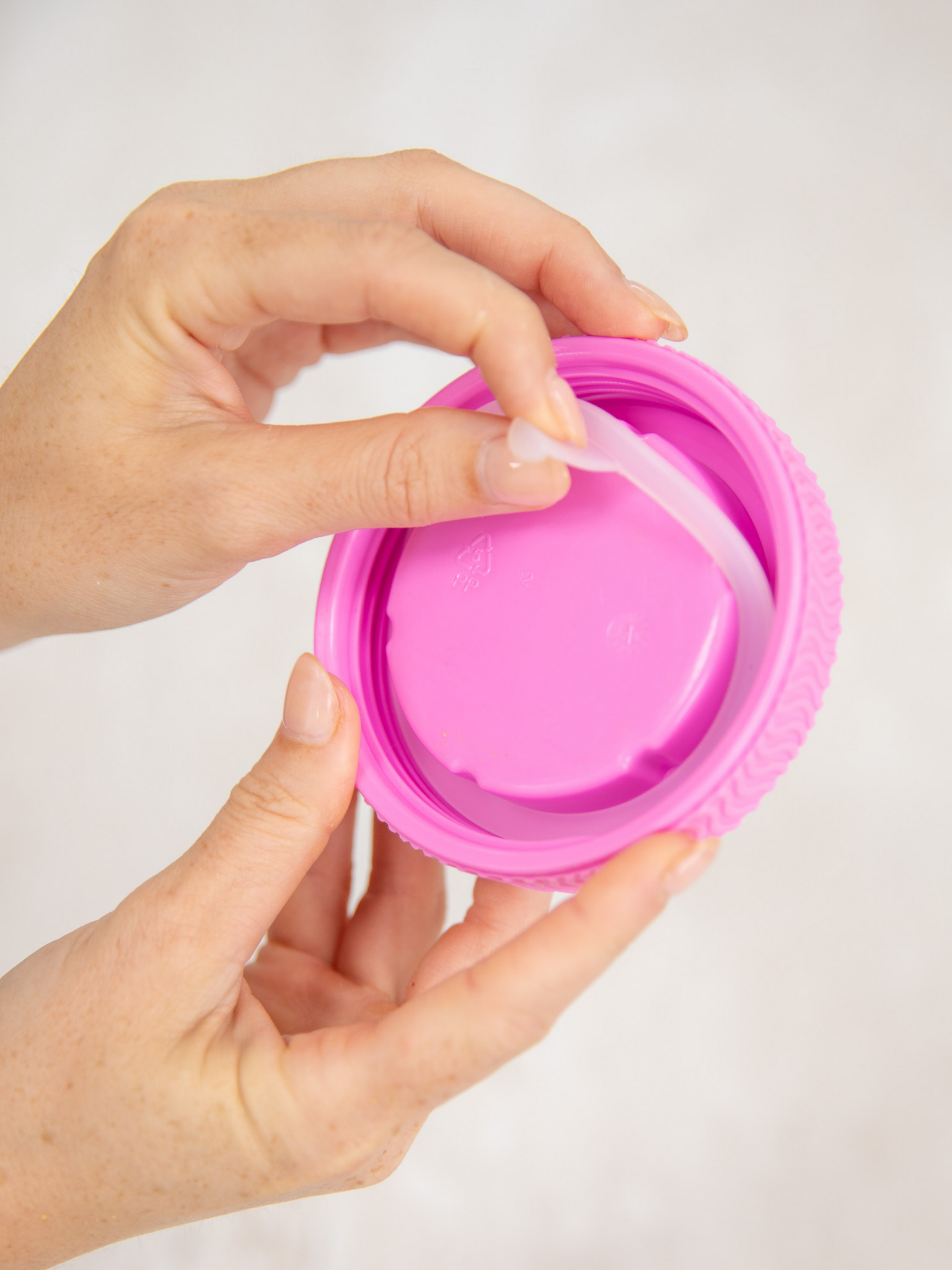 The lid features a silicone band that makes opening easy, even for small hands. Both the jar and lid are dishwasher safe for easy cleaning.