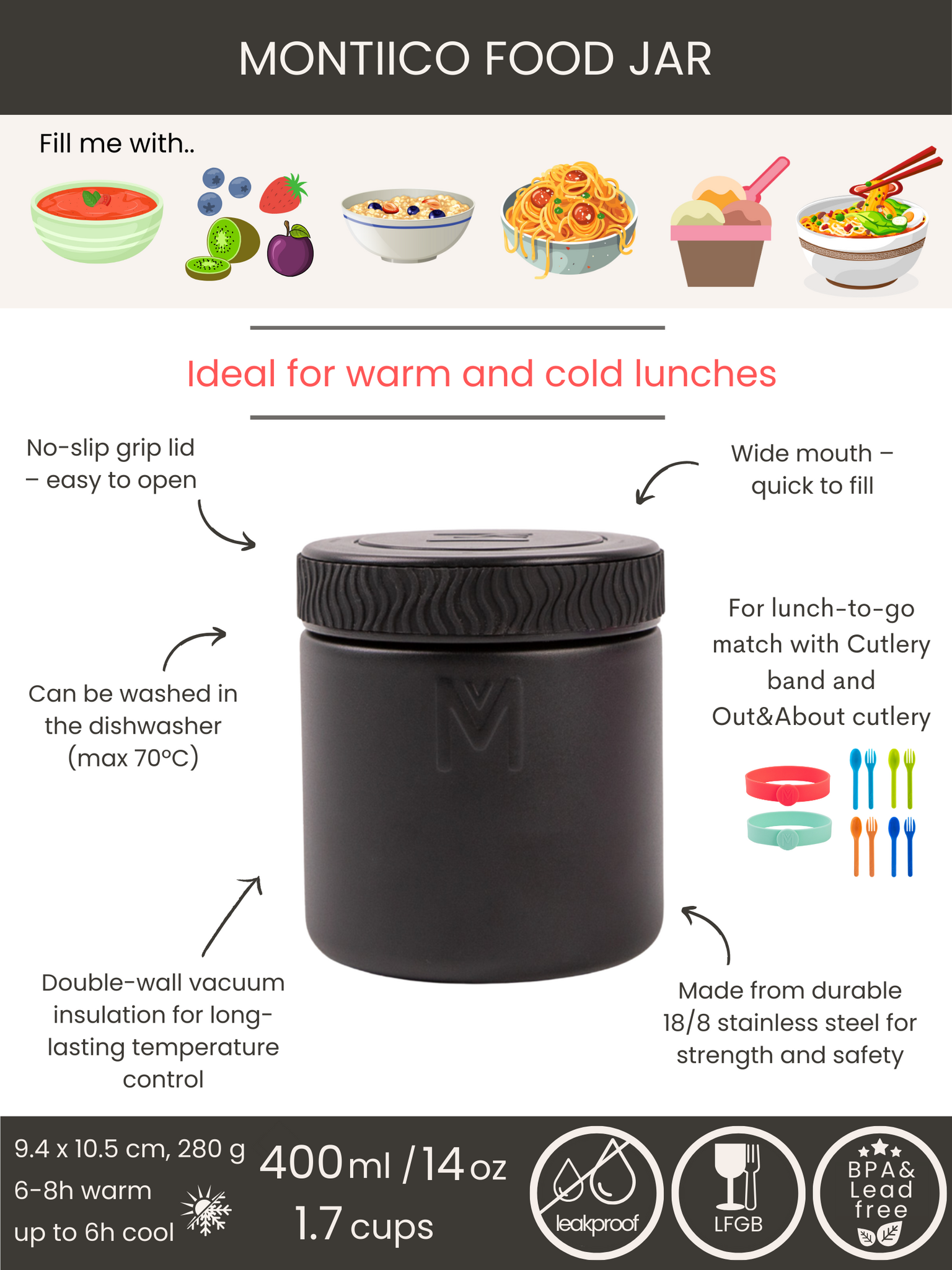 MontiiCo insulated food jar 400ml - for hot and cold food - Midnight black