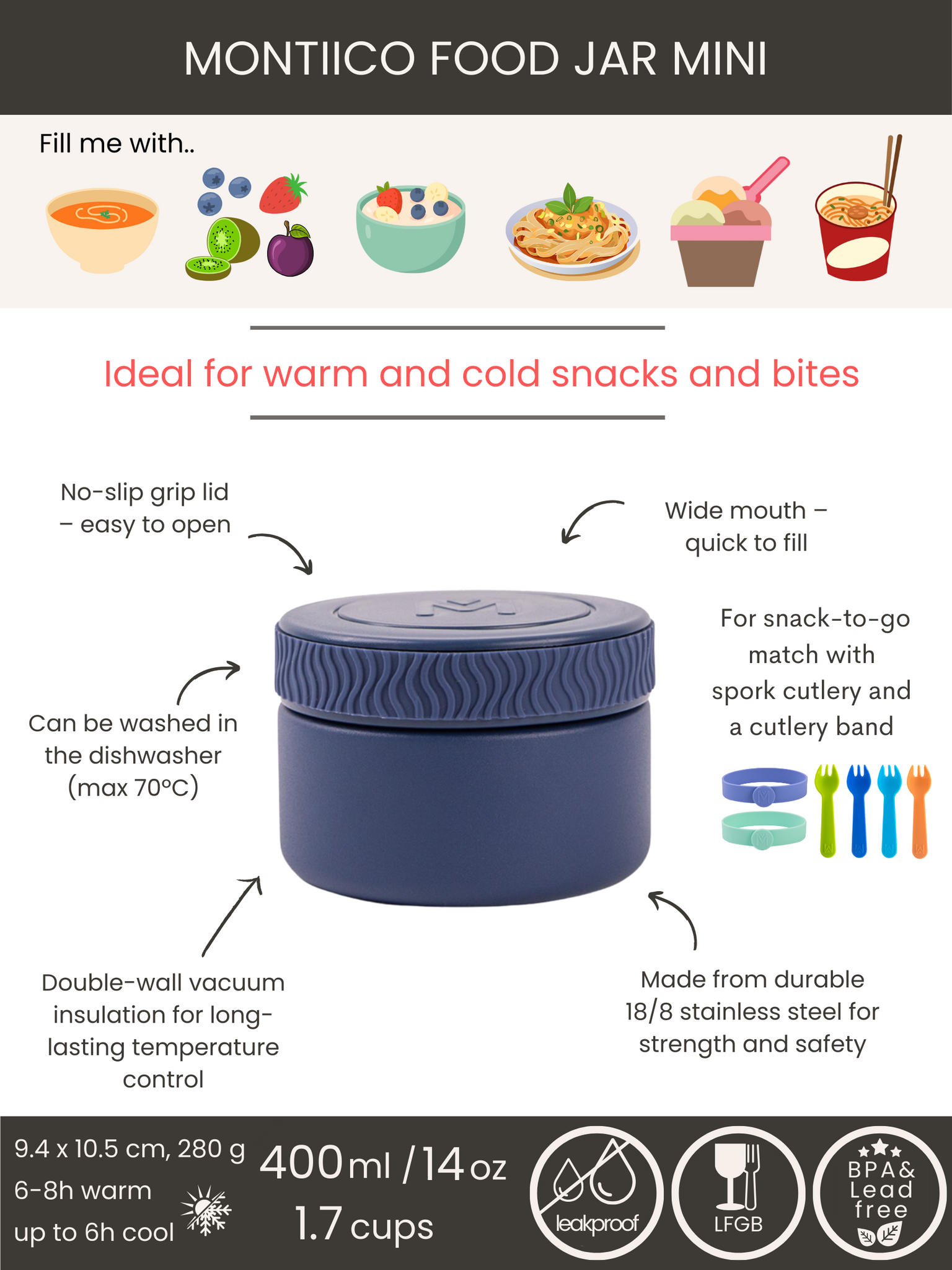 • MontiiCo insulated mini food jar 200ml - for hot and cold food -Navy-4