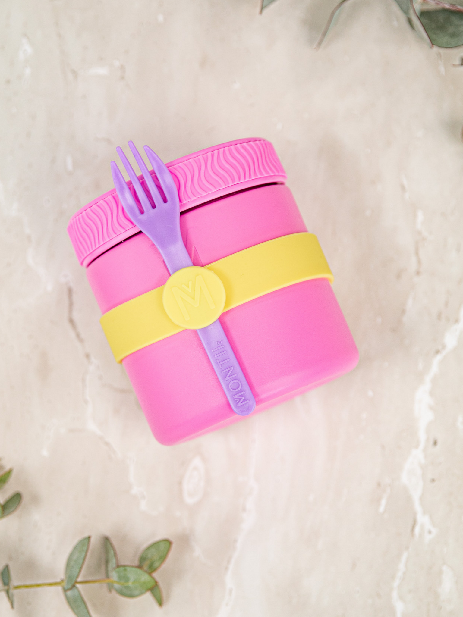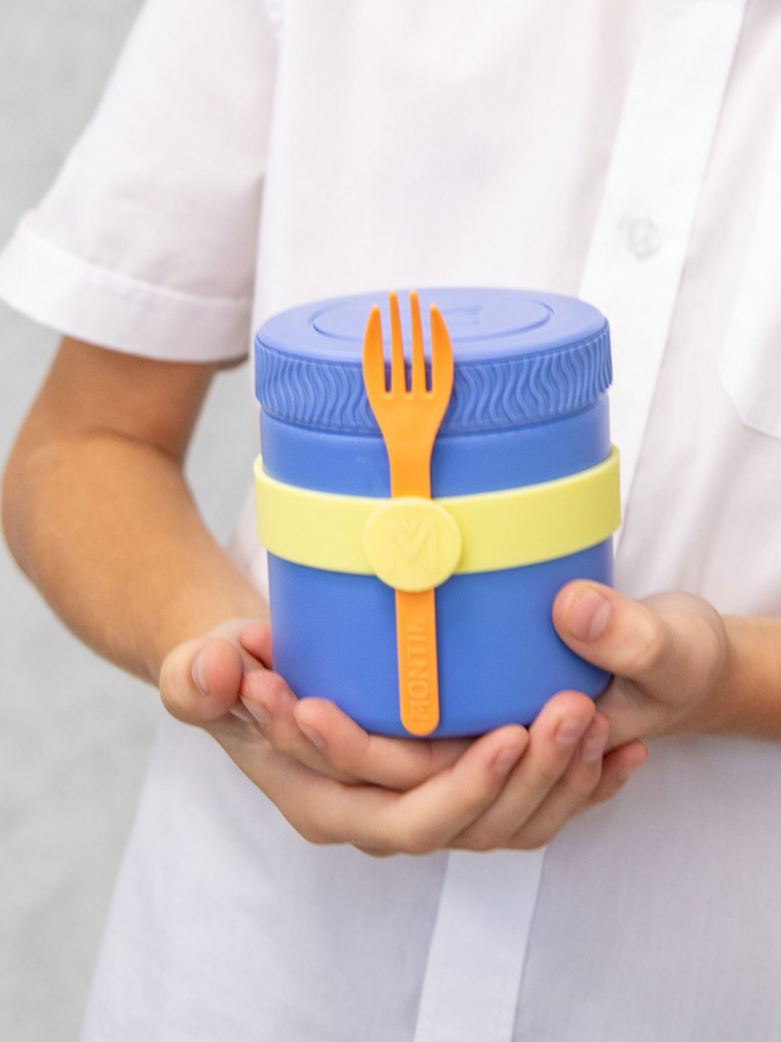 The silicone band for food jars keeps cutlery secure and is perfect for on-the-go. Simply slide the band over an insulated food jar or a snack box, such as the Bento Two.