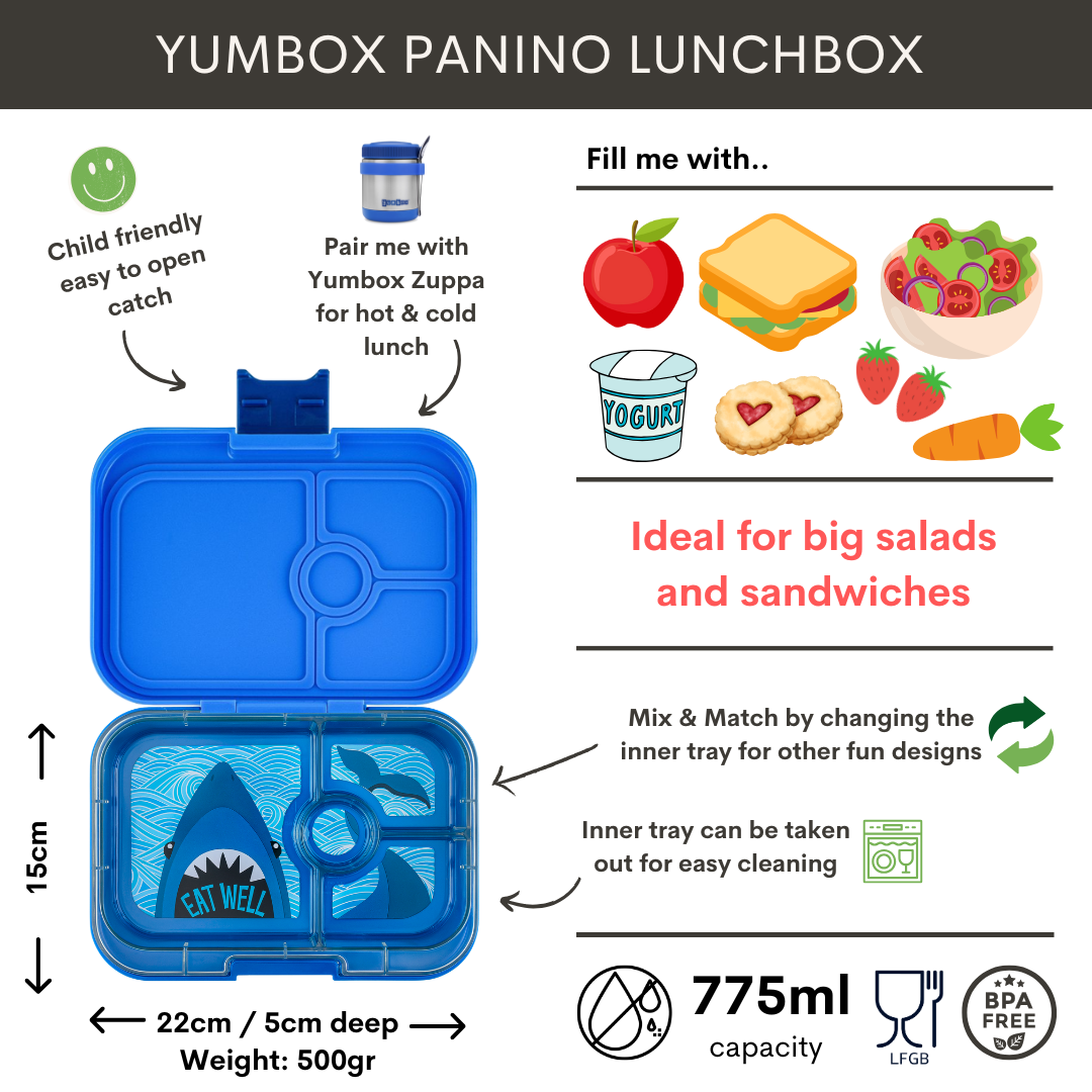 Yumbox Panino - lekvrije Bento box broodtrommel - 4 vakken - Surf Blauw / Haai tray