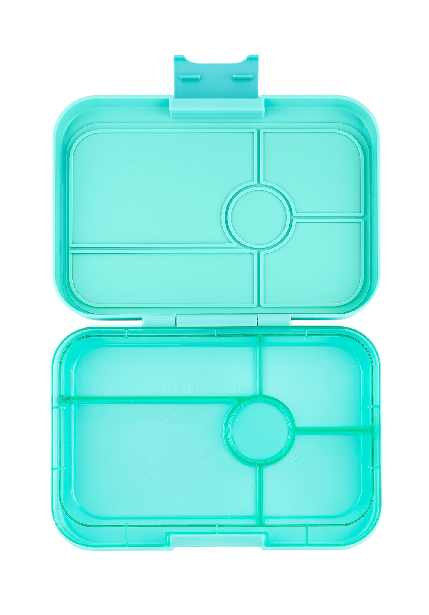 Mooie aqua blauwe Yumbox Tapas lunchtrommel met transparant aqua gekleurde tray. Verpak je gezonde en gevarieerde snacks in je Yumbox Tapas XL lunchdoos met 5 compartimenten. De handige indeling maakt het makkelijk om je eigen selectie te maken van gezonde porties. De mogelijkheden zijn eindeloos. Voeg noten, crackers, fruit, groenten, yoghurt of zelfs een dipsaus toe. De Yumbox is lekvrij door de siliconen afsluiting tussen de compartimenten. De vakken worden hierdoor goed afgesloten.
